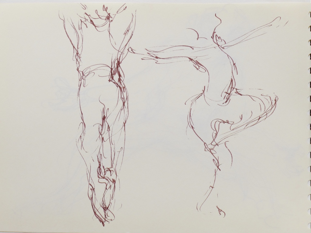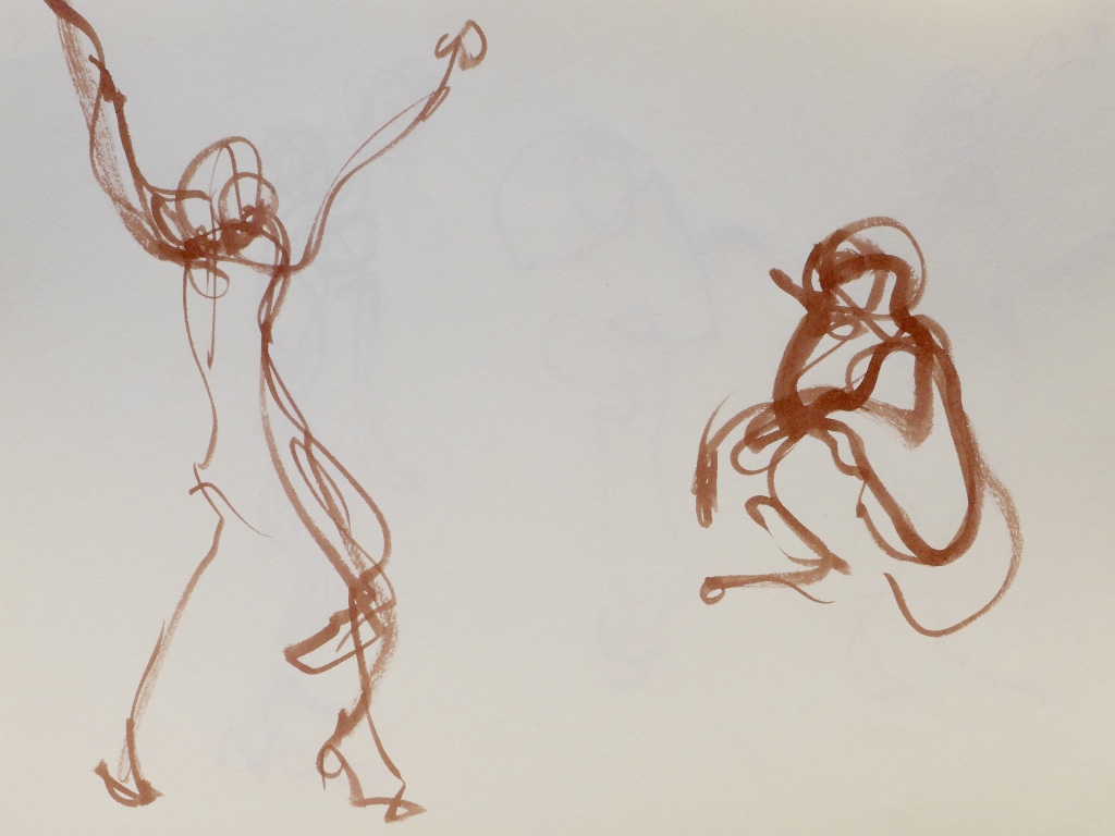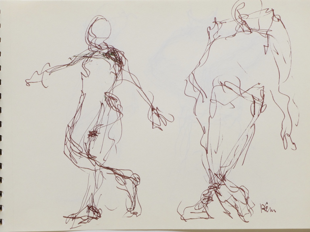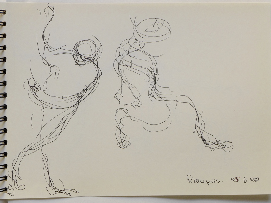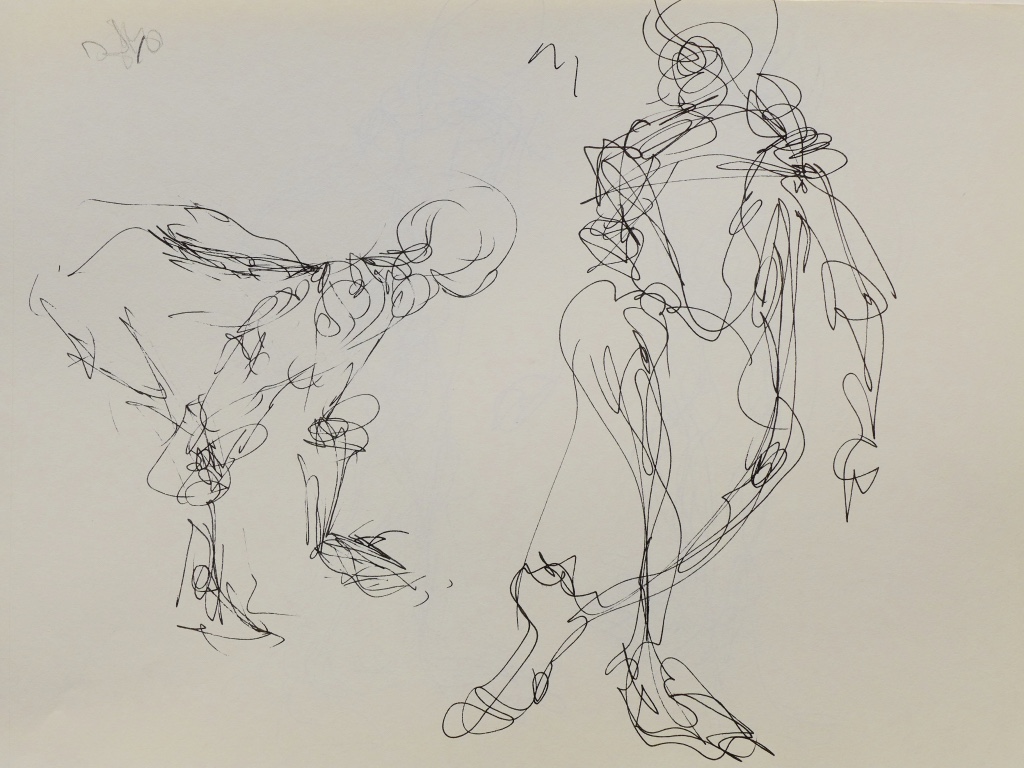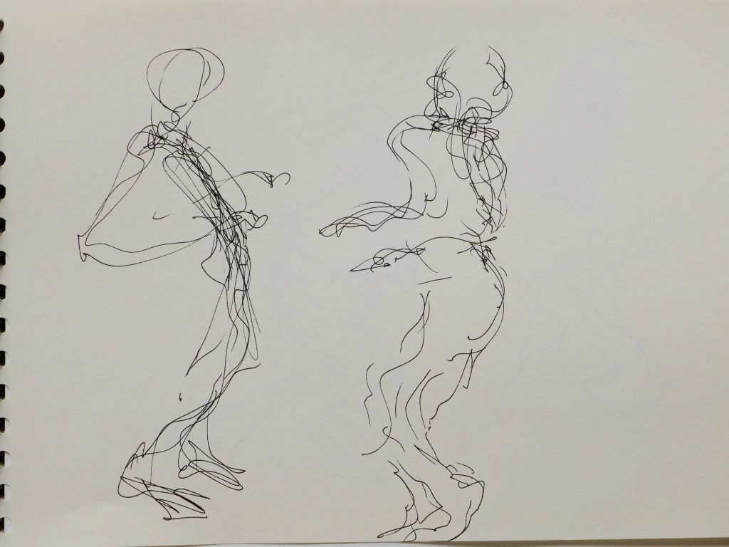 Série de croquis réalisés sur le vif lors des répétitions des danseurs.