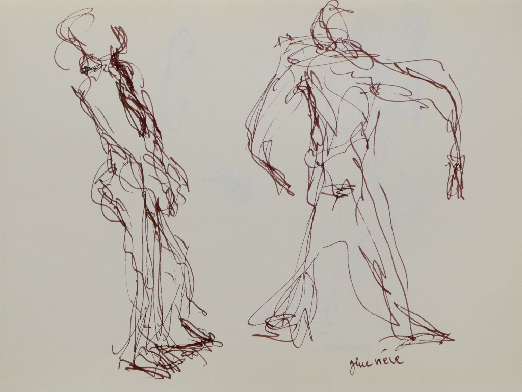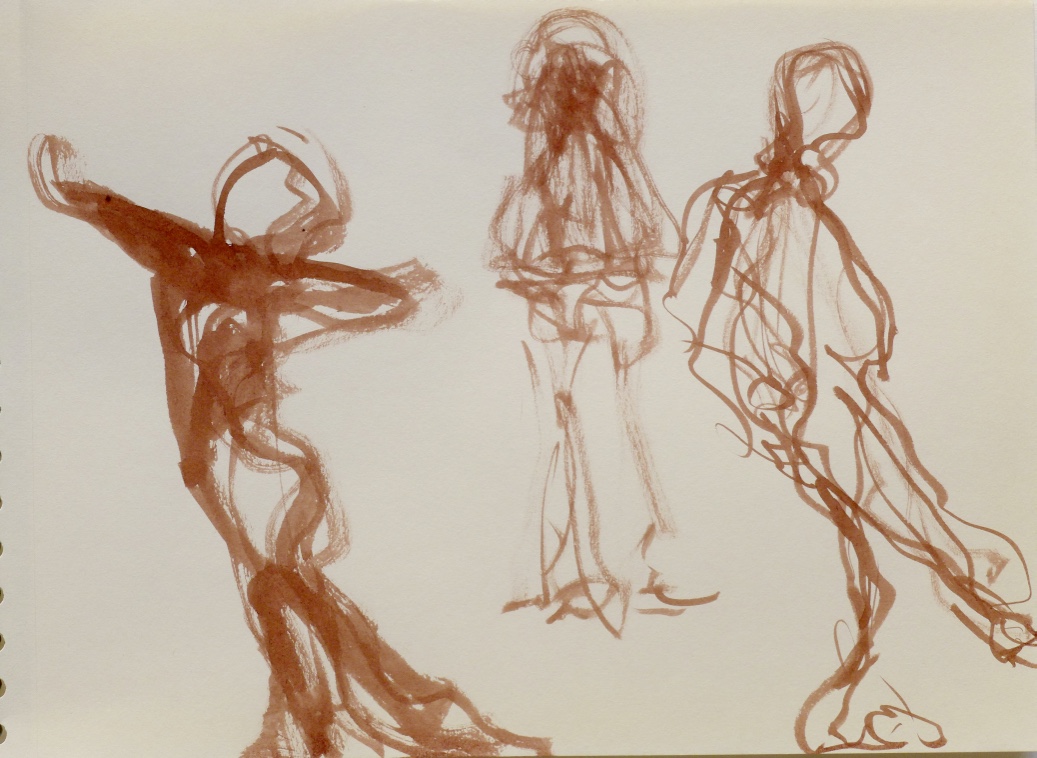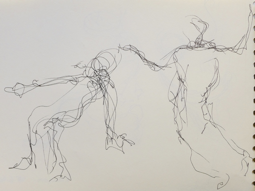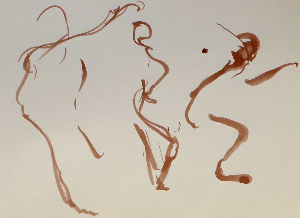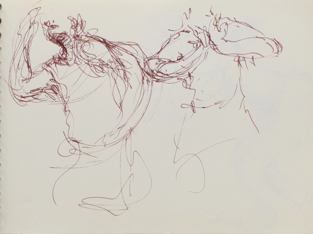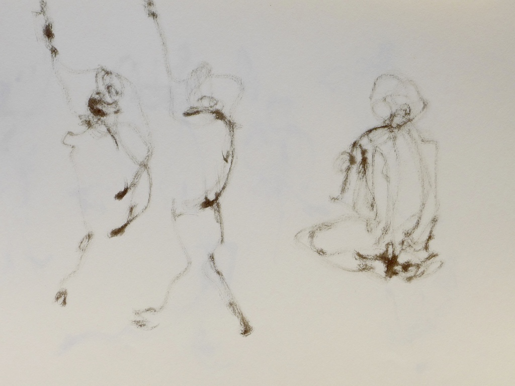 Série de croquis réalisés sur le vif lors des répétitions des danseurs.