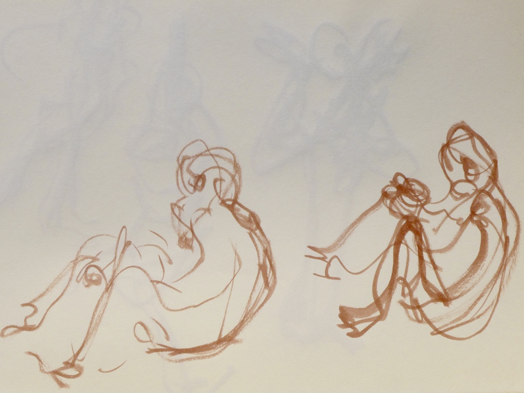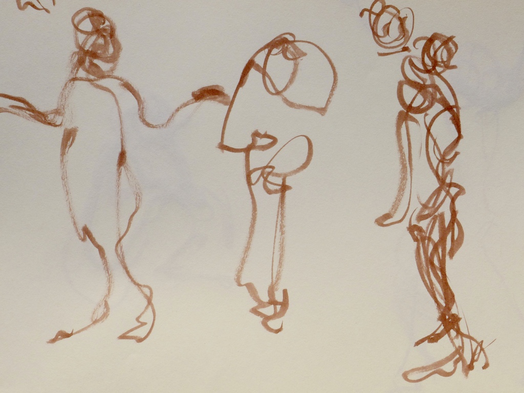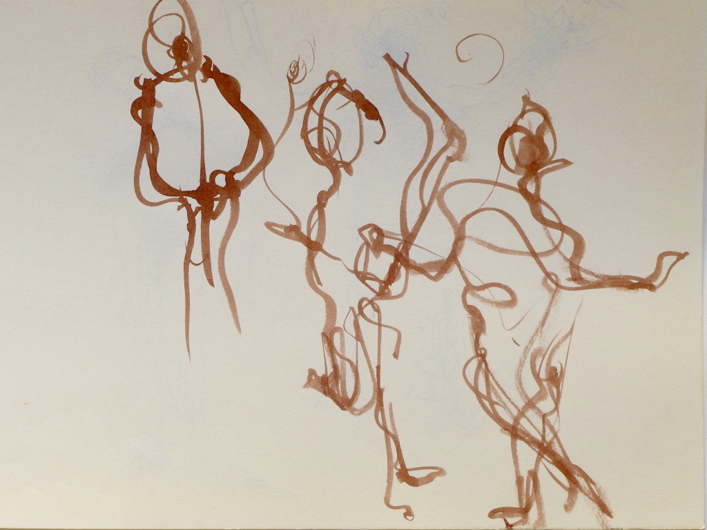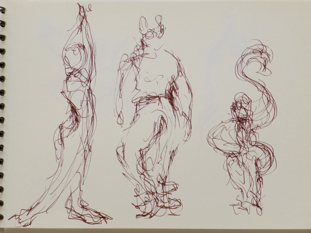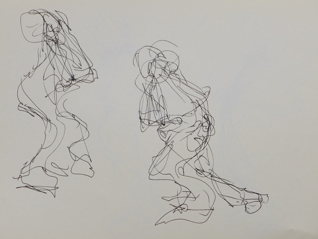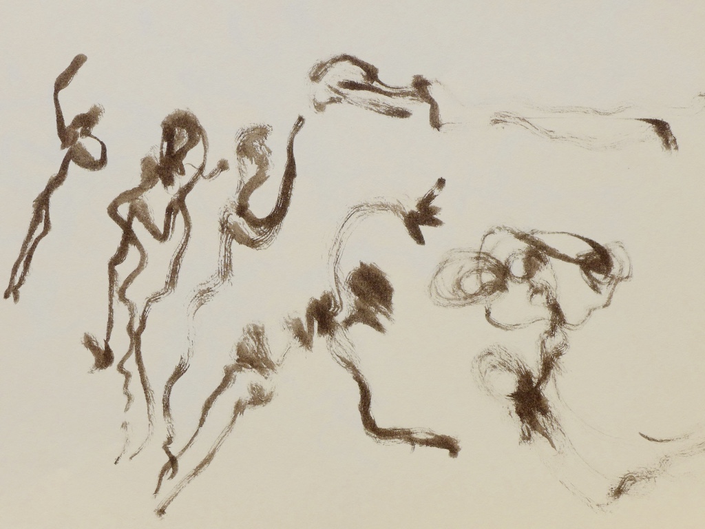 Série de croquis réalisés sur le vif lors des répétitions des danseurs.